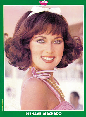 FILHA DO LEGENDÁRIO CARLOS MACHADO, DIRETOR DE MEMORÁVEIS SHOWS DO TEATRO DE REVISTA, DJENANE MACHADO DESDE NOVA SE TRANSFORMOU NUMA VERSÁTIL VEDETE. NA TELEVISÃO ESPECIALIZOU-SE NOS PAPÉIS DE MOCINHAS LOUQUINHAS E SIMPÁTICAS, SE FIRMANDO NOS ANOS 1970, COMO UMA DAS MAIS QUERIDAS ESTRELAS DA TELEVISÃO. INFELIZMENTE, NO FINAL DOS ANOS 1980, DEVIDO A PROBLEMAS DE ORDEM PESSOAL, ABANDONOU A CARREIRA, MAS SUA BELA E CARISMÁTICA IMAGEM JAMAIS SERÁ ESQUECIDA PELOS INÚMEROS FÃS DE SUA GRAÇA E TALENTO. MARAVILHOSA DJENANE MACHADO!