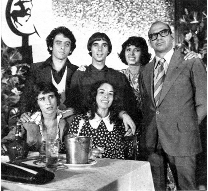 Luiz Armando Queiroz, Theresa Amayo, Marco Nanini, Débora Duarte, João Carlos Barroso e Lauro Góes, os irmãos Lisboa de Pecado Capital (TV Globo, 1975), novela de Janete Clair
