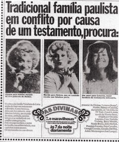 Anúncio da novela As Divinas e... Maravilhosas