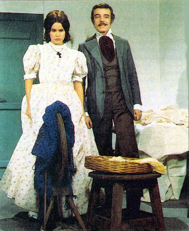 | Rubens de Falco e Lucélia Santos em A Escrava Isaura (TV Globo, 1976), novela de Gilberto Braga, baseada no romance homônimo de Bernardo Guimarães |