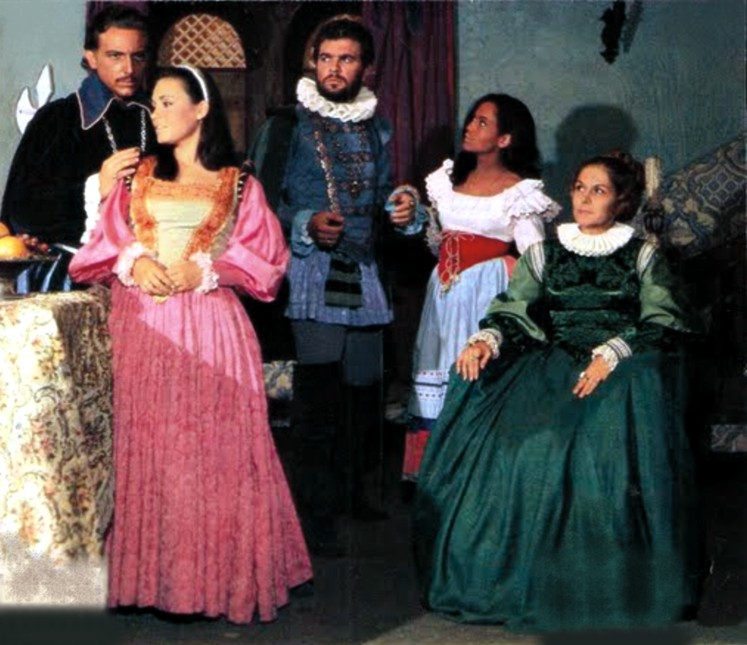 | Suzana Vieira com Regina Duarte, Fúlvio Stefanini, Renato Máster e Vera Nunes em As Minas de Prata (TV Excélsior, 1966/67), novela de Ivani Ribeiro |