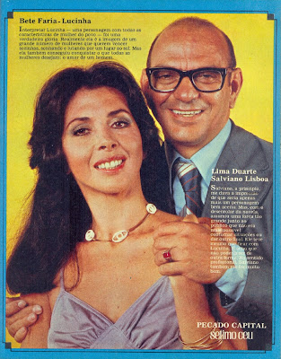 | Em Pecado Capital, Lucinha (Betty Faria) se torna o objeto da paixão do patrão, o viúvo Salviano Lisboa (Lima Duarte). Um enorme sucesso! |